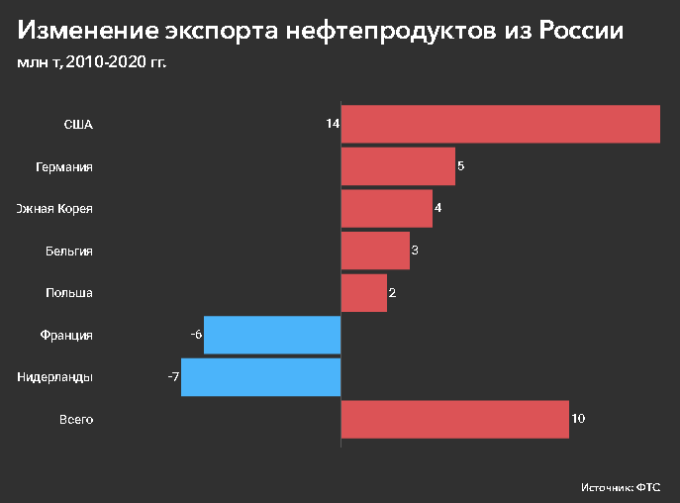 Прекращение поставок из Венесуэлы создало проблемы не только для правительства Николаса Мадуро, но и для американских нефтяников. Выход был найден — в 2019-2020 годах. США в разы увеличили импорт сернистого российского мазута, став крупнейшим импортером российских темных нефтепродуктов. В 2020-м Россия отправила в США 10,9 млн т мазута (потребление на самом российском рынке было немногим меньше — 10,5 млн т). В Америке российский мазут смешивали с легкой сланцевой нефтью и получившуюся смесь направляли на переработку. Заметному увеличению импорта из России способствовала и мировая конъюнктура — спрос на нефтепродукты упал из-за пандемии, что привело к увеличению дисконта для российского мазута (к цене на нефть), повысив его привлекательность для американских НПЗ.
