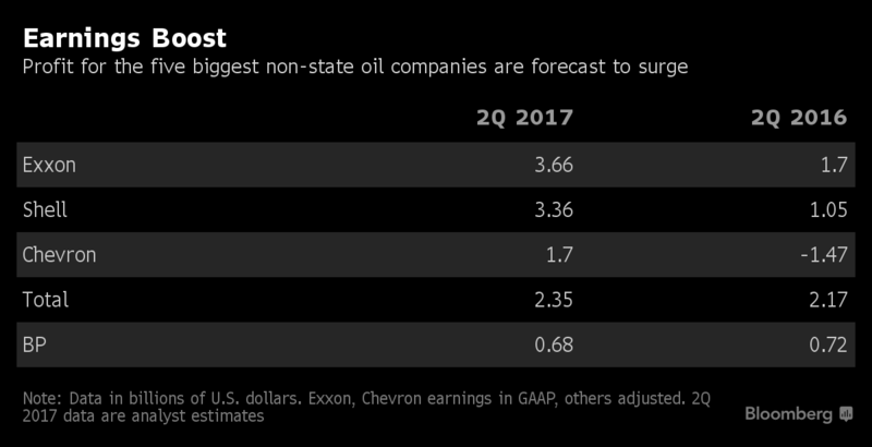 Exxon Mobil Corp и Royal Dutch Shell Plc прогнозируют более чем двукратную прибыль по сравнению с прошлым годом, что намного опережает 8-процентный рост цены нефти марки Brent. Chevron Corp. выйдет на прибыль, а французская Total SA сообщит о повышении ежегодной прибыли третий квартал подряд.