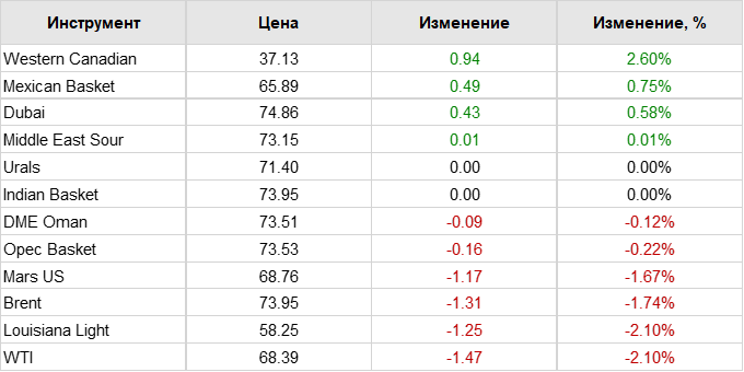 Нефть. Цены на сорта. Данные на 01.08.18