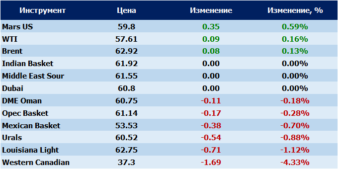 Нефть. Цены на сорта. Данные на 01.12.2017