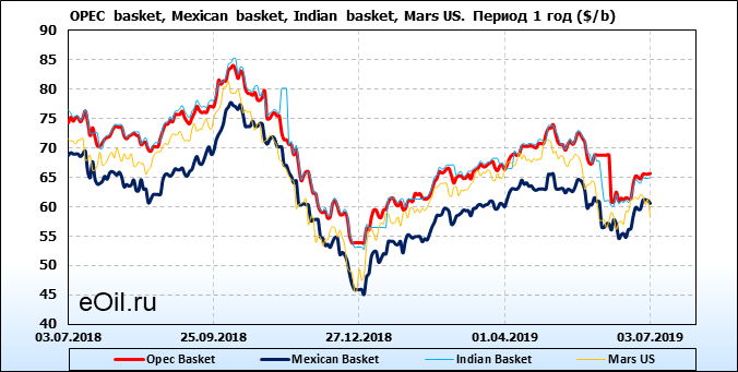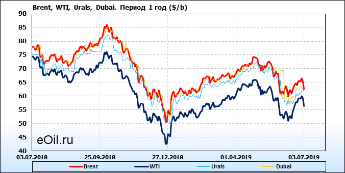 Мировые цены на нефть во вторник усиленно опускаются, снижение стоимости связано с опасениями за нефтяной спрос, свидетельствуют данные торгов. По состоянию на 18.25 мск стоимость августовских фьючерсов на нефть марки WTI снижается на 3,76%, до 56,87 доллара за баррель, цена сентябрьских фьючерсов на североморскую нефтяную смесь марки Brent — на 3,24%, до 62,95 доллара за баррель. Минутами ранее снижение достигало 4% и 3,5% соответственно. Нефтяные цены падают вопреки решению стран ОПЕК+ продлить соглашение по сокращению добычи нефти до конца марта 2020 года. Инвесторы опасаются за перспективы роста нефтяного спроса. Также страны ОПЕК+ подписали во вторник хартию о бессрочном сотрудничестве, предусматривающую создание постоянной структуры в целях стабилизации рынка нефти.