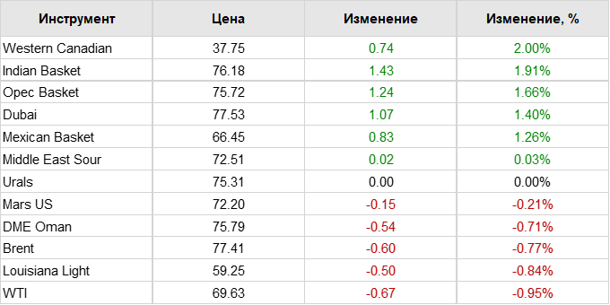 Нефть. Цены на сорта. Данные на 03.09.18