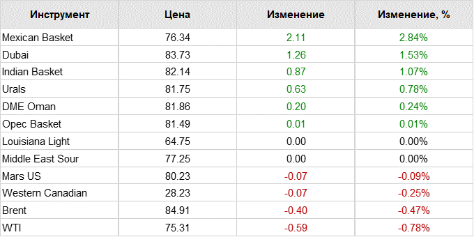 Декабрьские фьючерсы на нефть марки Brent на лондонской бирже ICE Futures к 8:16 по московскому времени подорожали на $0,03 (0,04%) — до $84,83 за баррель. На торгах в предыдущий день их цена снизилась на $0,18 (0,21%) и составляла на закрытие $84,80 за баррель.