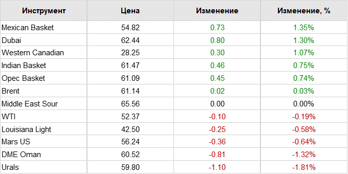Нефть. Цены на сорта. Данные на 06.12.18