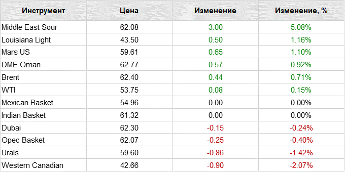 Стоимость фьючерса на WTI на март на электронной сессии на Нью-йоркской товарной бирже (NYMEX) понизилась к этому времени на $0,15 (0,28%) — до $53,86 за баррель. На предыдущих торгах WTI подорожала на $0,35 (0,65%), до $54,01 за баррель.