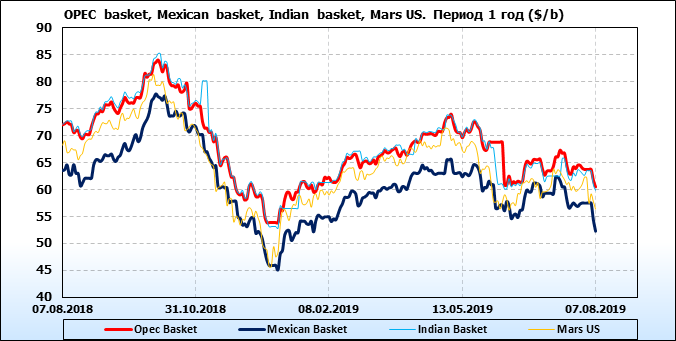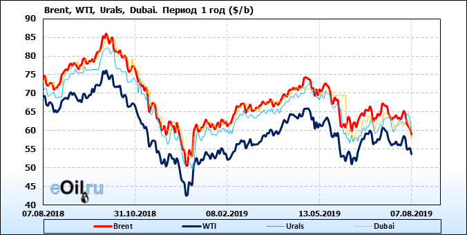 Нефть. Цены на сорта. Данные на 07.08.19