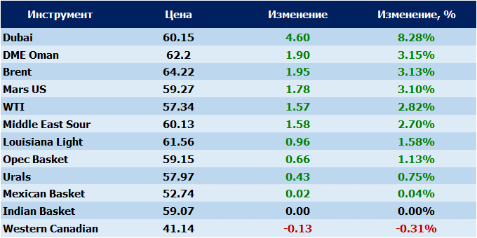 Нефть. Цены на сорта. Данные на 07.11.2017