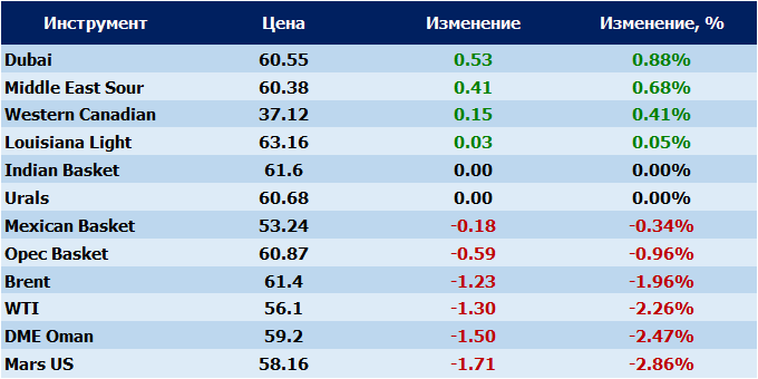 Нефть. Цены на сорта. Данные на 07.12.2017