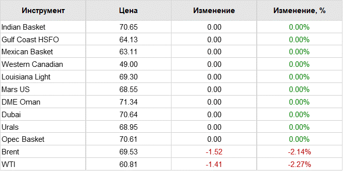Стоимость фьючерса на WTI на июнь на электронной сессии на Нью-йоркской товарной бирже (NYMEX) повысилась к этому времени на $0,49 (0,8%) — до $61,89 за баррель. На предыдущих торгах WTI подешевела на $0,85 (1,37%), до $61,40 за баррель.
