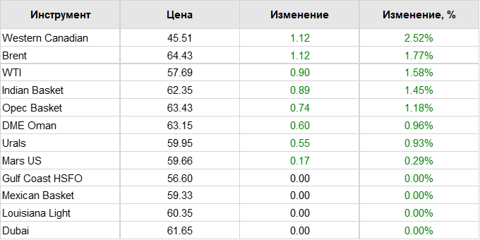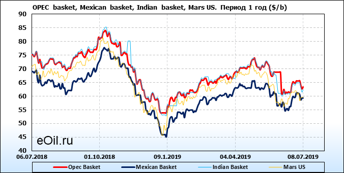 Нефть. Цены на сорта. Данные на 08.07.19