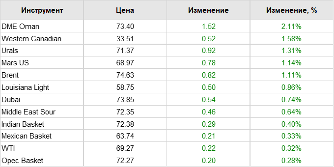 Цены на нефть эталонных марок слабо меняются в ходе азиатских торгов в среду после роста во вторник, вызванного опасениями перебоев с поставками топлива из Ирана и падением запасов в США. Цена октябрьских фьючерсов на Brent на лондонской бирже ICE Futures к 8:05 по Москве уменьшилась на $0,03 (0,04%) — до $74,62 за баррель. Во вторник контракты подорожали на $0,90 (1,22%) — до $74,65 за баррель. Стоимость фьючерса на WTI на сентябрь на электронных торгах Нью-йоркской товарной биржи (NYMEX) поднялась к этому времени на $0,04 (0,06%) — до $69,21 за баррель. По итогам предыдущей сессии контракты выросли в цене на $0,16 (0,23%) — до $69,17 за баррель.
