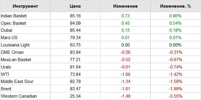 Декабрьские фьючерсы на нефть марки Brent на лондонской бирже ICE Futures к 8:22 по московскому времени подешевели на $0,79 (0,94%) — до $83,37 за баррель. На торгах в пятницу их цена снизилась на $0,42 (0,5%) и составляла на закрытие $84,16 за баррель.