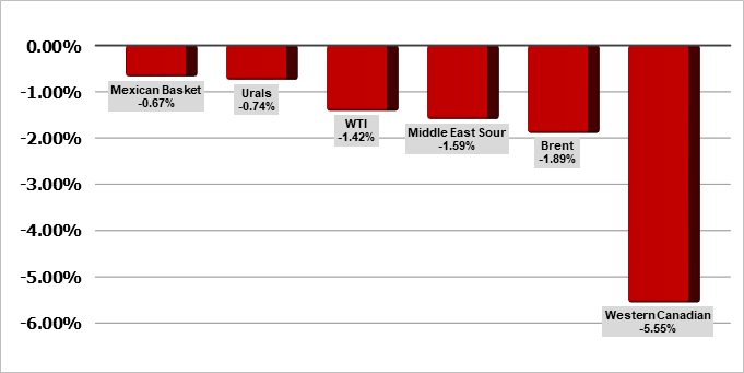 Нефть эталонных марок дешевеет в понедельник на заявлениях представителей Саудовской Аравии о готовности компенсировать сокращение поставок топлива из Ирана за счет свободных мощностей.