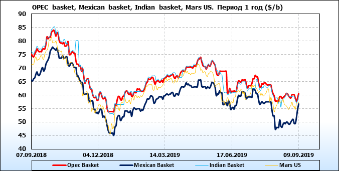 Нефть. Цены на сорта. Данные на 09.09.19