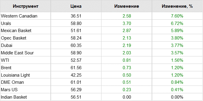 Нефть. Цены на сорта. Данные на 11.01.19