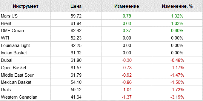 Цена апрельских контрактов на Brent на лондонской бирже ICE Futures к 8:00 по московскому времени снизилась на 59 центов (0,95%) — до $61,51 за баррель.