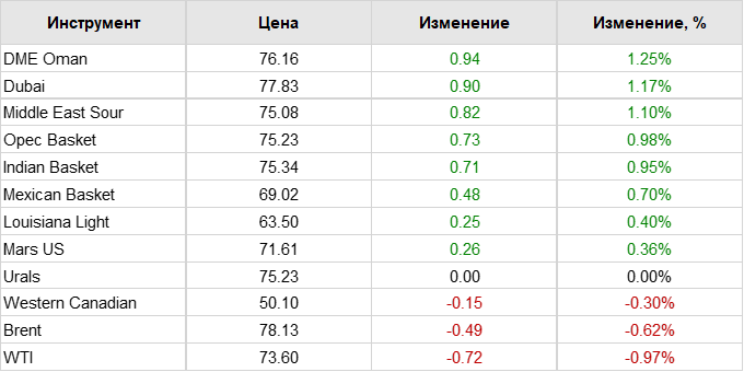 Нефть. Цены на сорта. Данные на 11.07.18