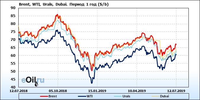 Баррель смеси Brent 11 июля 2019 года превысил отметку в $67. За торговый день цена за баррель североморской марки поднималась до $67,5. Brent использует все поводы для роста, которых сейчас собралось довольно много. Во-первых, стоит напомнить, что нефть — это финансовый актив, так как ее цена формируется на базе стоимости производных контрактов на фьючерсном рынке. А поскольку сейчас на финансовых рынках царит радостная эйфория, нефтяные цены также уверенно идут вверх.
