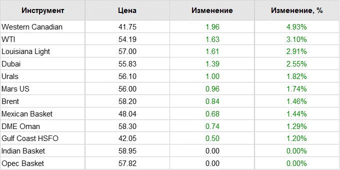 Октябрьские фьючерсы на Brent на лондонской бирже ICE (NYSE:ICE) Futures к 8:25 мск подешевели на $0,12 (0,2%) — до $58,41 за баррель. На торгах в прошлую пятницу цена выросла на $1,15 (2%) и составляла на закрытие $58,53 за баррель. Стоимость фьючерса на WTI на сентябрь на электронной сессии на Нью-йоркской товарной бирже (NYMEX) уменьшилась к этому времени на $0,17 (0,31%) — до $54,33 за баррель. На предыдущих торгах WTI подорожала на $1,96 (3,73%), до $54,50 за баррель.