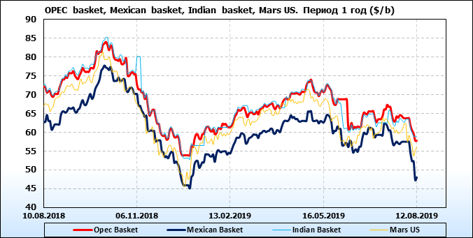 Цены на нефть умеренно снижаются в ходе азиатских торгов в понедельник на опасениях, что затянувшийся конфликт между США и Китаем в торговой сфере негативно скажется на мировом спросе на топливо. В пятницу президент США Дональд Трамп заявил журналистам, что назначенный на сентябрь новый раунд переговоров в Вашингтоне может не состояться. «У нас открытый диалог. Посмотрим, удастся ли нам сохранить в силе встречу в сентябре, — сказал Трамп. — Если удастся — отлично, если нет — тоже отлично».