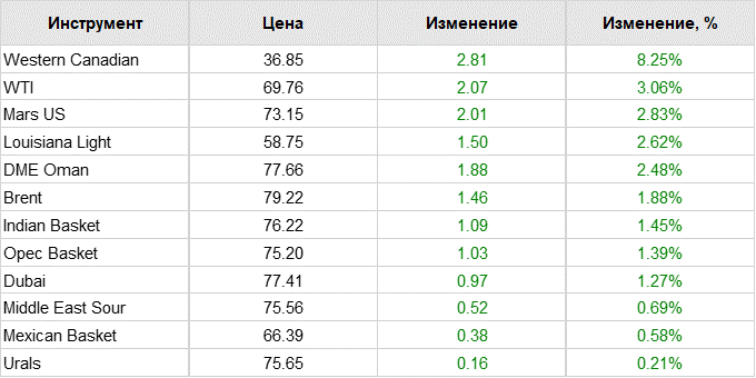 Нефть. Цены на сорта. Данные на 12.09.18
