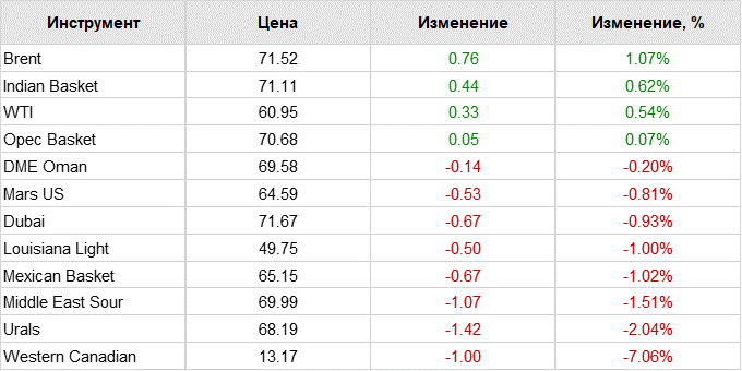 Январские фьючерсы на нефть марки Brent на лондонской бирже ICE Futures к 8:11 по Москве подорожали на $1,13 (1,61%) — до $71,31 за баррель. На торгах в предыдущий день их цена опустилась на $0,47 (0,67%) и составляла на закрытие $70,18 за баррель.