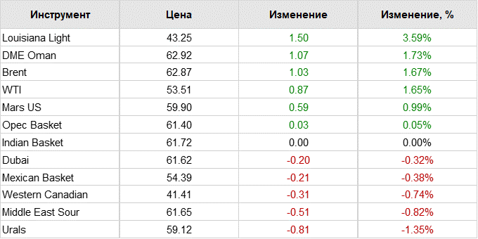 Цена апрельских фьючерсов на Brent на лондонской бирже ICE Futures к 8:00 по московскому времени увеличилась на $0,64 (1,03%) — до $63,06 за баррель.