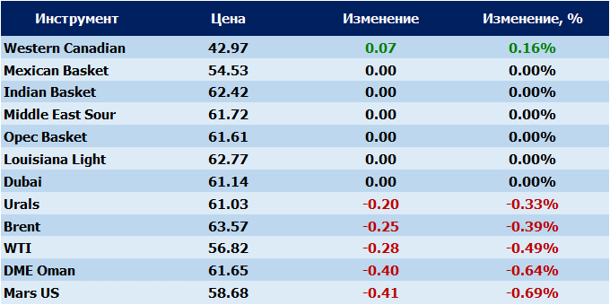 Нефть. Цены на сорта. Данные на 13.11.2017