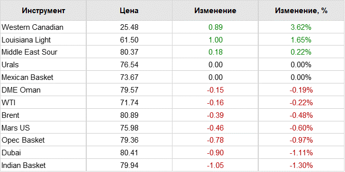 Декабрьские фьючерсы на нефть марки Brent на лондонской бирже ICE Futures к 8:26 по московскому времени подорожали на $0,34 (0,42%) — до $81,12 за баррель. На торгах в предыдущий день их цена выросла на $0,35 (0,44%) и составляла на закрытие $80,78 за баррель.