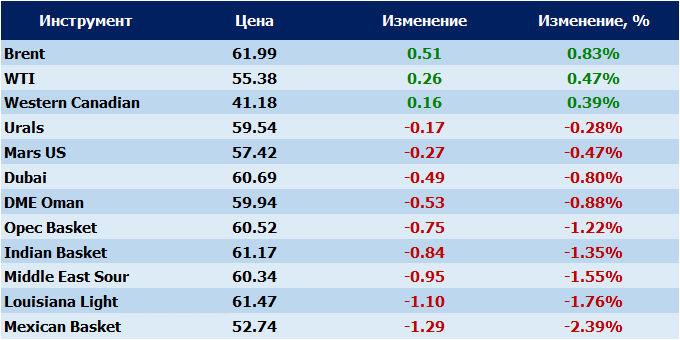 Нефть. Цены на сорта. Данные на 16.11.2017