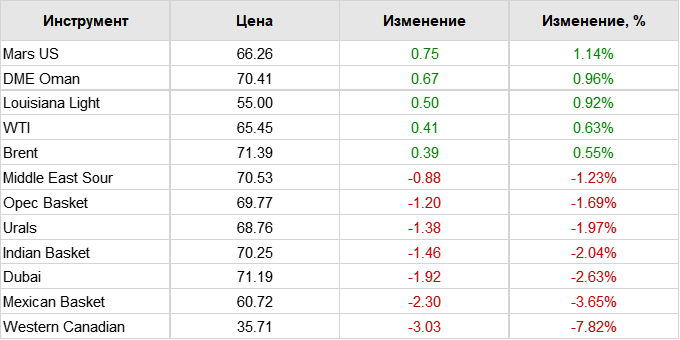 Цена октябрьских фьючерсов на Brent на лондонской бирже ICE Futures к 18:27 по Москве увеличилась на $0,42 (0,59%) — до $71,18 за баррель. Стоимость фьючерса на WTI на сентябрь на торгах Нью-йоркской товарной биржи (NYMEX) выросла к этому времени на $0,38 (0,58%) — до $65,39 за баррель.