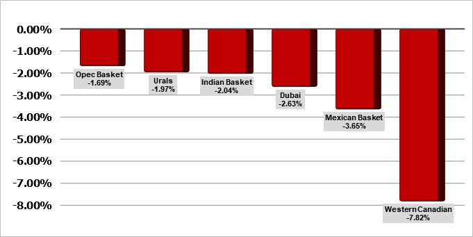 Накануне Brent подешевела более чем на 2%, WTI — более чем на 3% на данных министерства энергетики США о том, что запасы нефти в стране на минувшей неделе подскочили на 6,81 млн баррелей, максимальными темпами с марта 2017 года. Кроме того, резервы нефти на терминале в Кушинге, где хранится торгуемая на NYMEX нефть, выросли на 1,6 млн баррелей после снижения в течение 12 предыдущих недель.