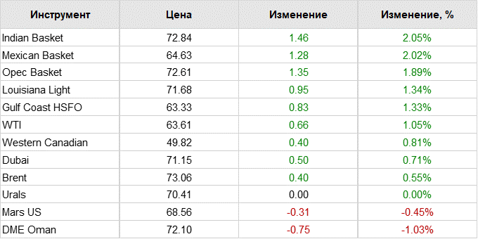 Стоимость июльских фьючерсов на Brent на лондонской бирже ICE Futures к 8:15 МСК составляет $73,17 за баррель, что на $0,96 (1,33%) выше уровня закрытия предыдущей сессии. В пятницу эти контракты упали в цене на $0,41 (0,56%) — до $72,21 за баррель.