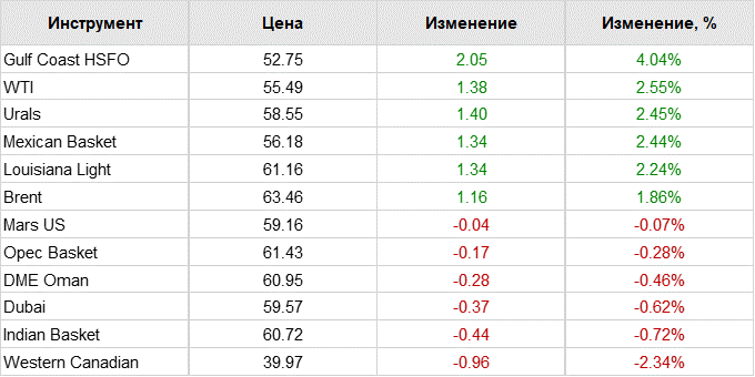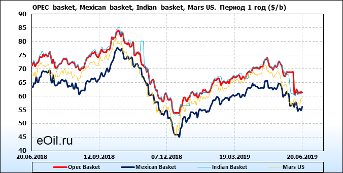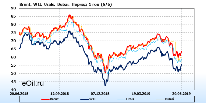 Нефть. Цены на сорта. Данные на 20.06.19