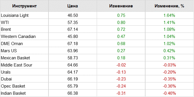 Цена апрельских фьючерсов на Brent на лондонской бирже ICE Futures к 8:00 МСК увеличилась на $0,16 (0,24%) — до $67,24 за баррель. По итогам предыдущей сессии контракты на Brent выросли в цене на $0,63 (1%) — до $67,08 за баррель.