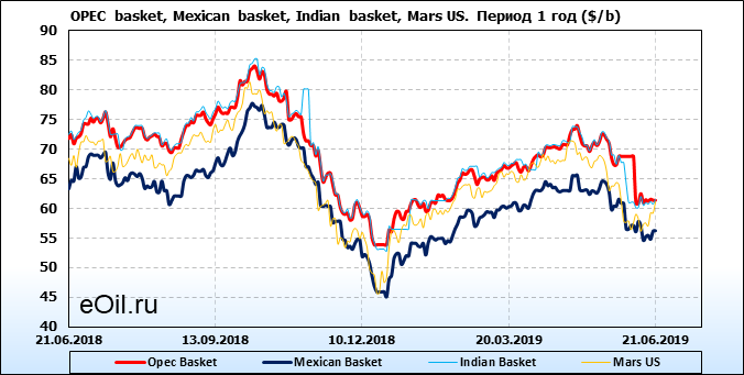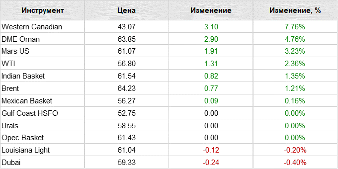 Фьючерс на нефть WTI на август на электронных торгах Нью-йоркской товарной биржи (NYMEX) к этому времени подешевел на $0,26 (0,46%) — до $56,81 за баррель. По итогам предыдущей сессии контракт вырос в цене на $3,1 (5,74%), максимальными темпами с декабря прошлого года — до $57,07 за баррель.