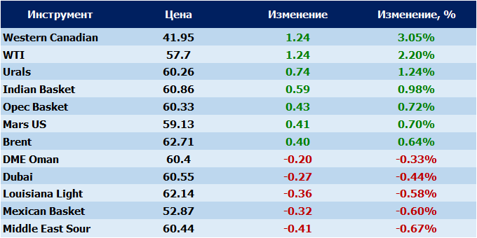 Нефть. Цены на сорта. Данные на 22.11.2017