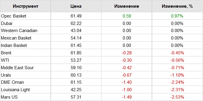 Фьючерс на WTI на март на электронных торгах Нью-йоркской товарной биржи (NYMEX) к этому времени подешевел на 4 цента (0,08%) — до $52,97 за баррель. Накануне стоимость нефти с поставкой в марте уменьшилась на $1,03 (1,91%), до $53,01 за баррель. Во вторник завершились торги февральским контрактом на WTI, который в последнюю сессию опустился на 2,3%, до $52,57 за баррель.