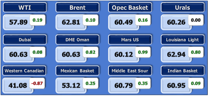 На Нью-Йоркской товарной бирже нефть марки WTI с поставкой в декабре подешевела на 0,19% до $57,91. На Intercontinental Exchange нефть марки Brent упала в цене на 0,19% до $ 63,13 за баррель.