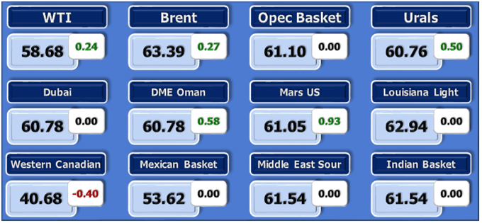 На закрытии торгов в пятницу фьючерсы на нефть WTI выросли на $0,93 или приблизительно на 1,6%, завершив пятничную сессию на позиции $58,95 за баррель — на уровне максимальных значений с лета 2015 года.