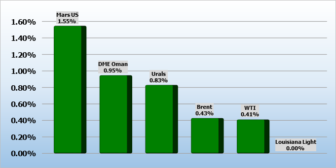 За неделю нефть WTI подорожала приблизительно на 4,2%, а нефть Brent — приблизительно на 1,8%.