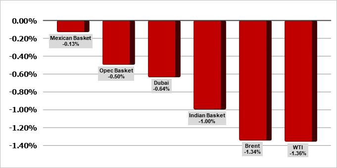 Цены на нефть эталонных марок снижаются в ходе азиатских торгов в понедельник на фоне роста числа действующих буровых установок в США и ослабления напряженности вокруг Венесуэлы.