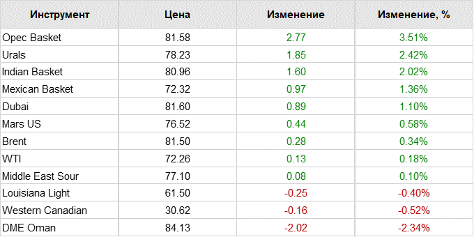 Ноябрьские фьючерсы на нефть марки Brent на лондонской бирже ICE Futures к 7:52 по московскому времени подешевели на $0,02 (0,02%) — до $81,7 за баррель. На торгах в предыдущий день их цена выросла на $0,38 (0,47%) и составляла на закрытие $81,72 за баррель.