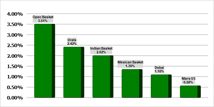 С начала текущей недели Brent прибавила в цене 3,7%, WTI — 2,1%.