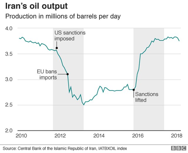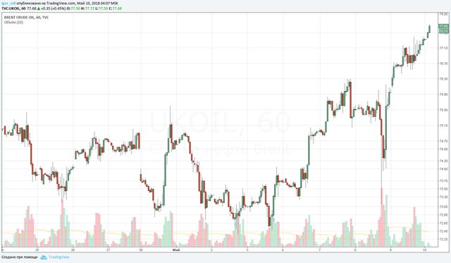 Цены на нефть марки Brent превысили отметку $77,5 за баррель. Это максимум за 3,5 года. Основная причина — решение американского президента Дональда Трампа о выходе из соглашения по ядерной программе Ирана и введении новых санкций против Исламской Республики.