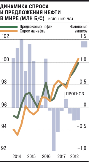 Прогноз мирового спроса на нефть в 2018 году МЭА улучшило на 100 тыс. б/с, до 1,4 млн б/c,— теперь прогноз составляет 99,2 млн б/с. При этом агентство указало, что на фоне снижения издержек сланцевой добычи в США прирост поставок в этой стране может оказаться сопоставимым с увеличением мирового спроса: с ноября по январь добыча нефти в США уже выросла, как сказано, «на колоссальные» 846 тыс. б/с.