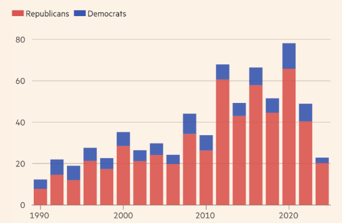 Несмотря на некоторые опасения в отрасли относительно Трампа и его повестки протекционизма, крупные нефтегазовые доноры по-прежнему в подавляющем большинстве поддерживают его партию. С момента избирательного цикла 2020 года Республиканская партия получила от отрасли $126,4 млн в виде избирательных пожертвований. Демократам досталось всего $23,6 млн.