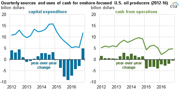 В четвертом квартале 2016 года капитальные расходы 44 нефтедобывающих компаний в США увеличились на $4,9 млрд. (72%).