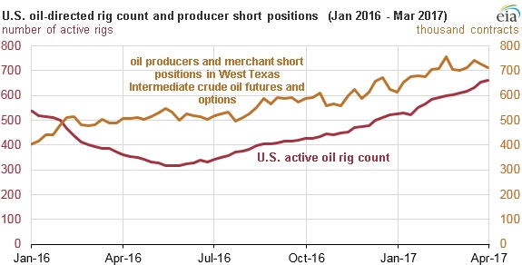 Многие из этих компаний используют фьючерсные контракты на поставку нефти, а также опционы в целях хеджирования чистых инвестиций. В середине февраля 2017 года количество коротких позиций на американском рынке достигло 756 000 контрактов.