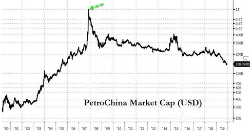 Вскоре после первичного размещения на Шанхайской бирже в 2007 г. компания стала первой в истории, достигшей капитализации в $1 трлн.